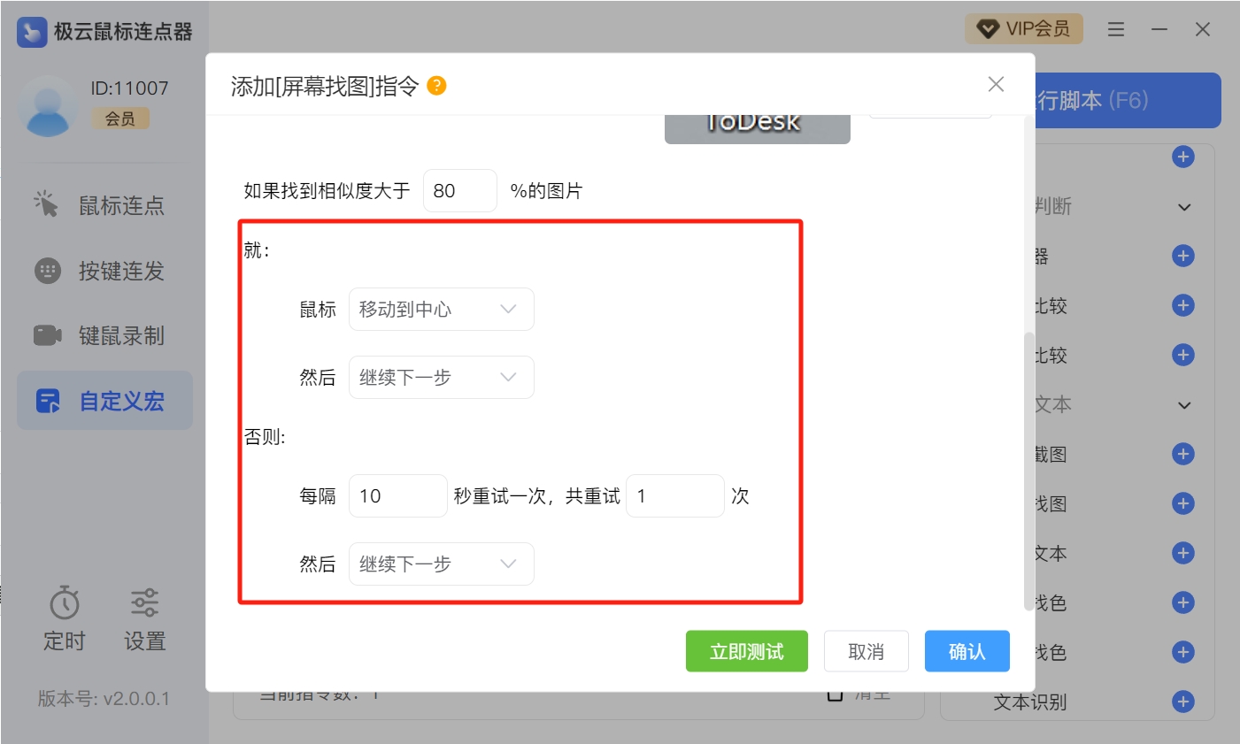 步骤六:设置后续动作,若没有找到图,则可以设置间隔多次时间再找一次,以及执行次数。