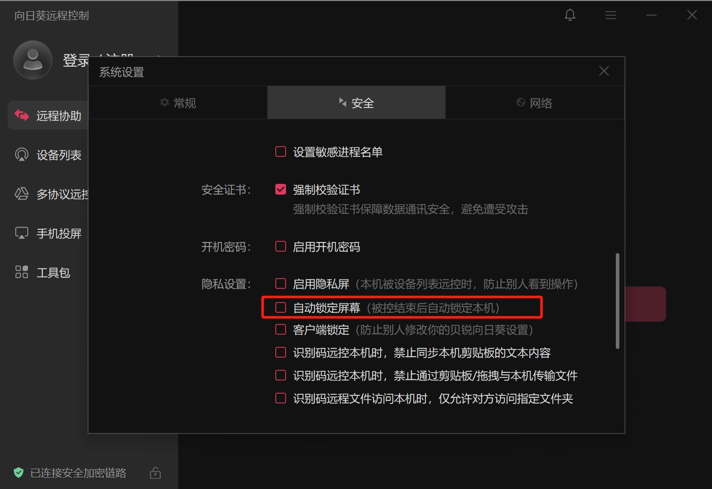 取消勾选 安全->隐私设置->自动锁定屏幕