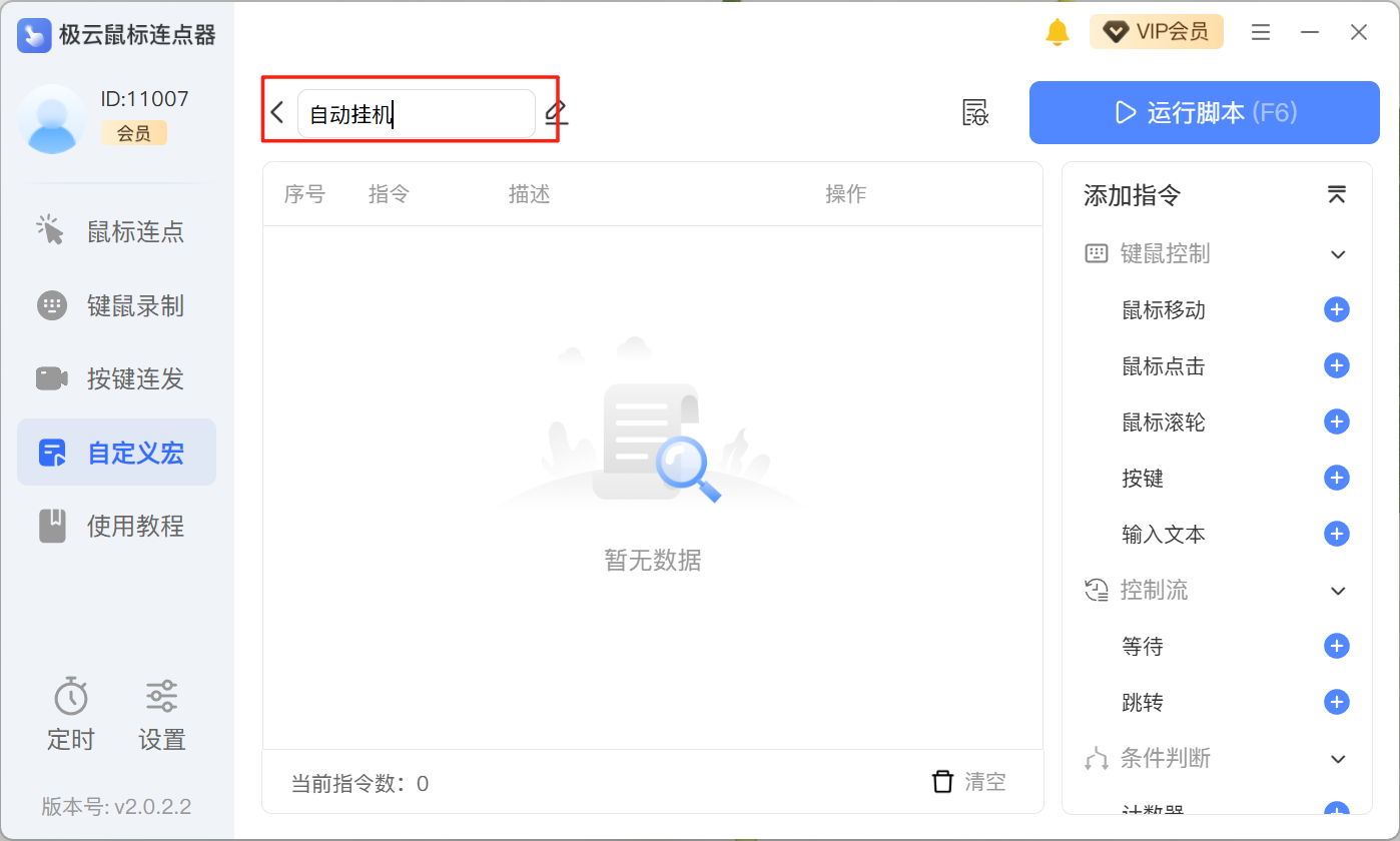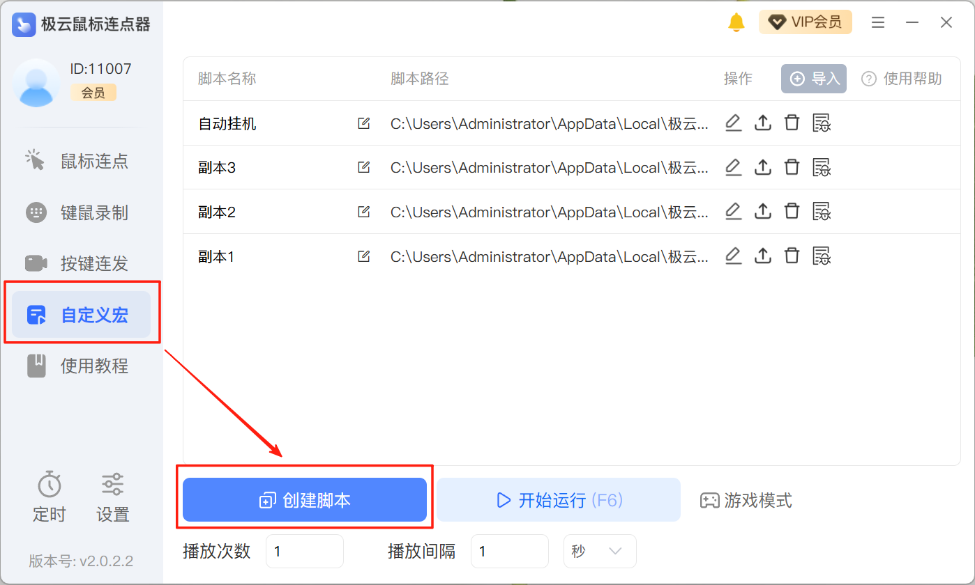 步骤一:打开极云鼠标连点器,选择自定义宏功能,创建一个新脚本