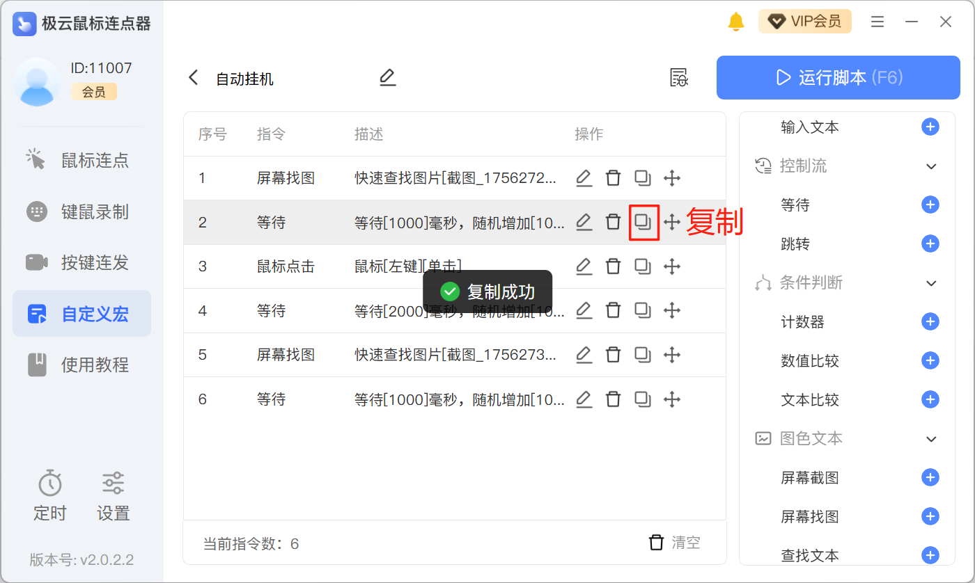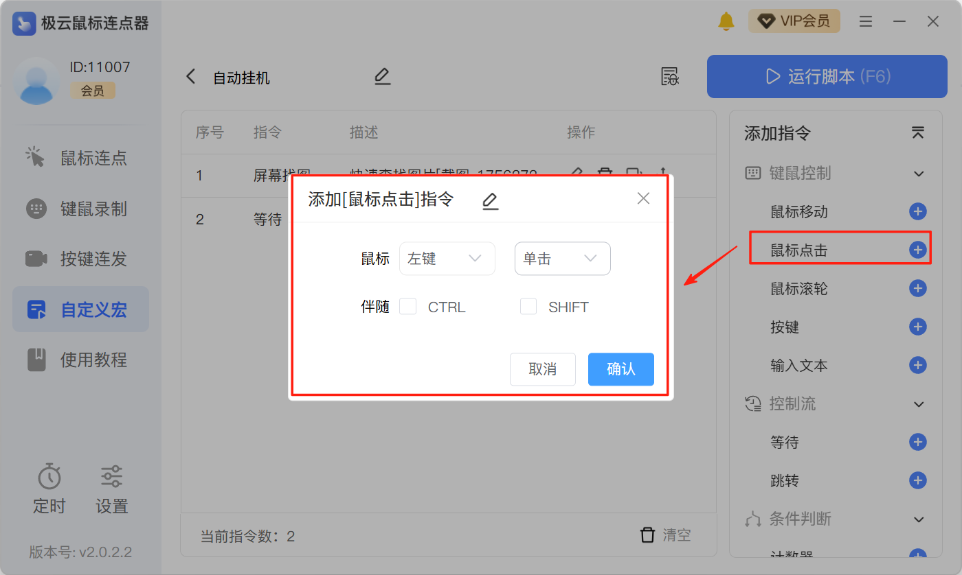 步骤十三:添加【鼠标点击】指令,可直接复制序号3